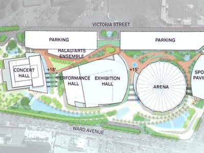 Take Ala Moana Boulevard West Bound (toward the airport) for approximately 2.5 miles. Turn right onto Ward Avenue, and continue for about 1 mile. You will see the Arena, Exhibition Hall and Concert Hall to your right. Turn right onto King Street (after you have passed the complex). The entrance to the parking structure is at the next stop light.